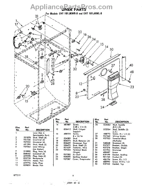 Parts for Whirlpool EHT181JKWR0: 06 - Liner Parts