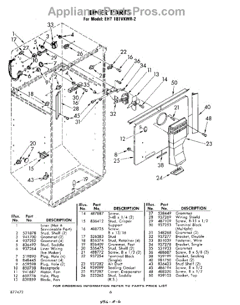 Parts for Whirlpool EHT181VKWR2: 06 - Liner Parts