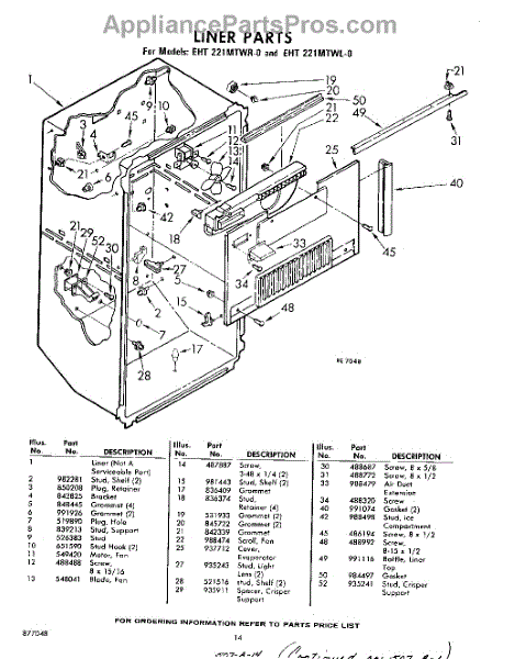 Parts for Whirlpool EHT221MTWR0: 14 - Liner Parts