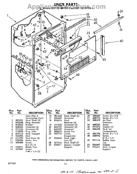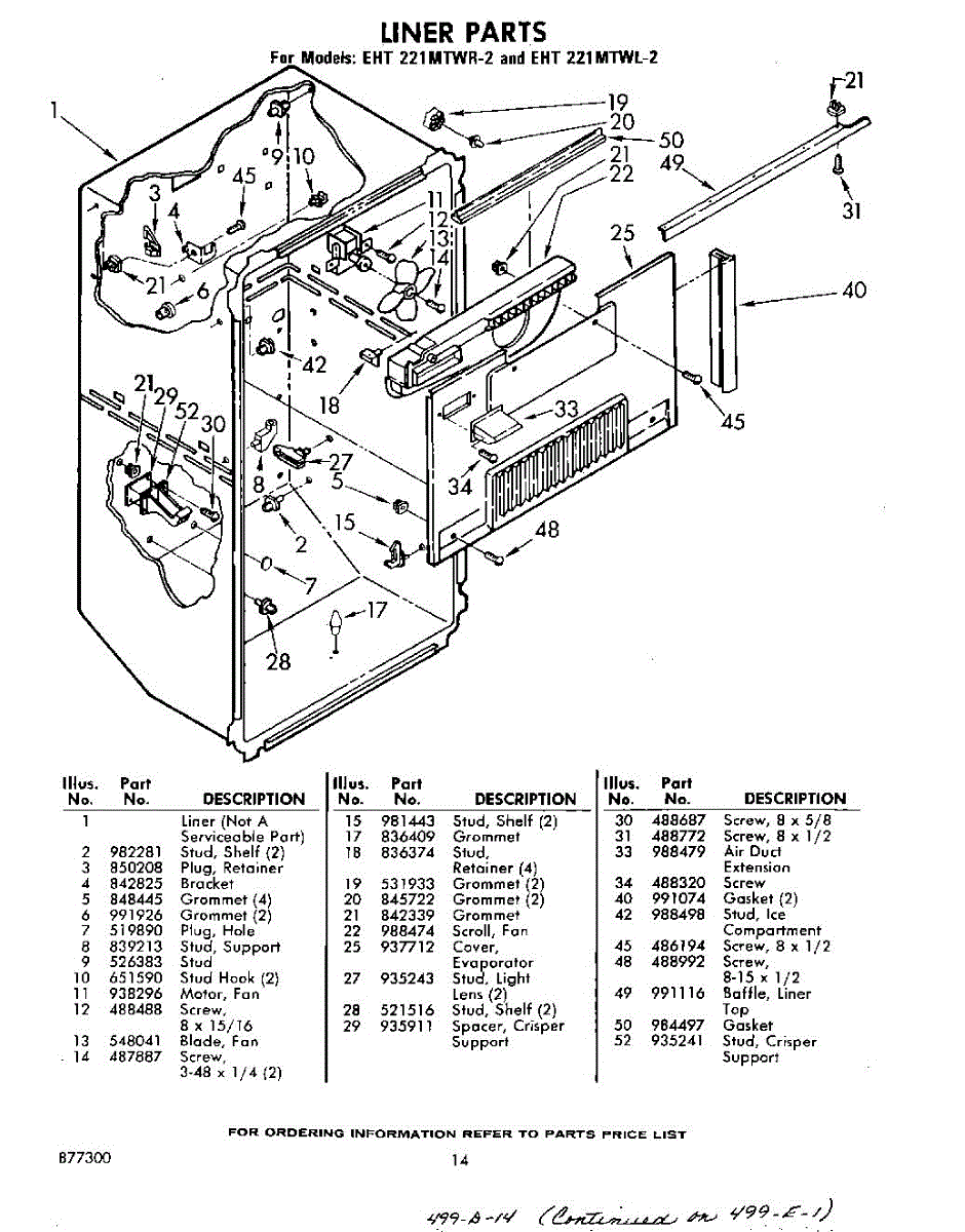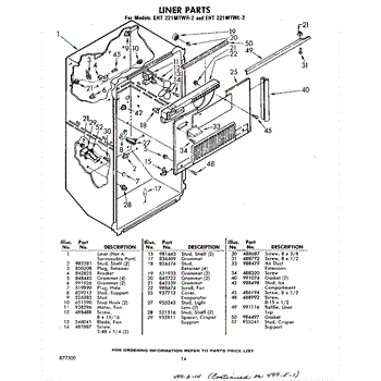 Parts for Whirlpool EHT221MTWR2: 14 - Liner Parts
