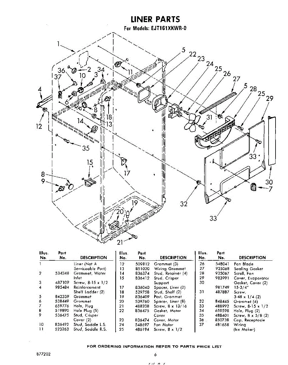 Parts for Whirlpool EJT161XKWR0: 06 - Liner Parts