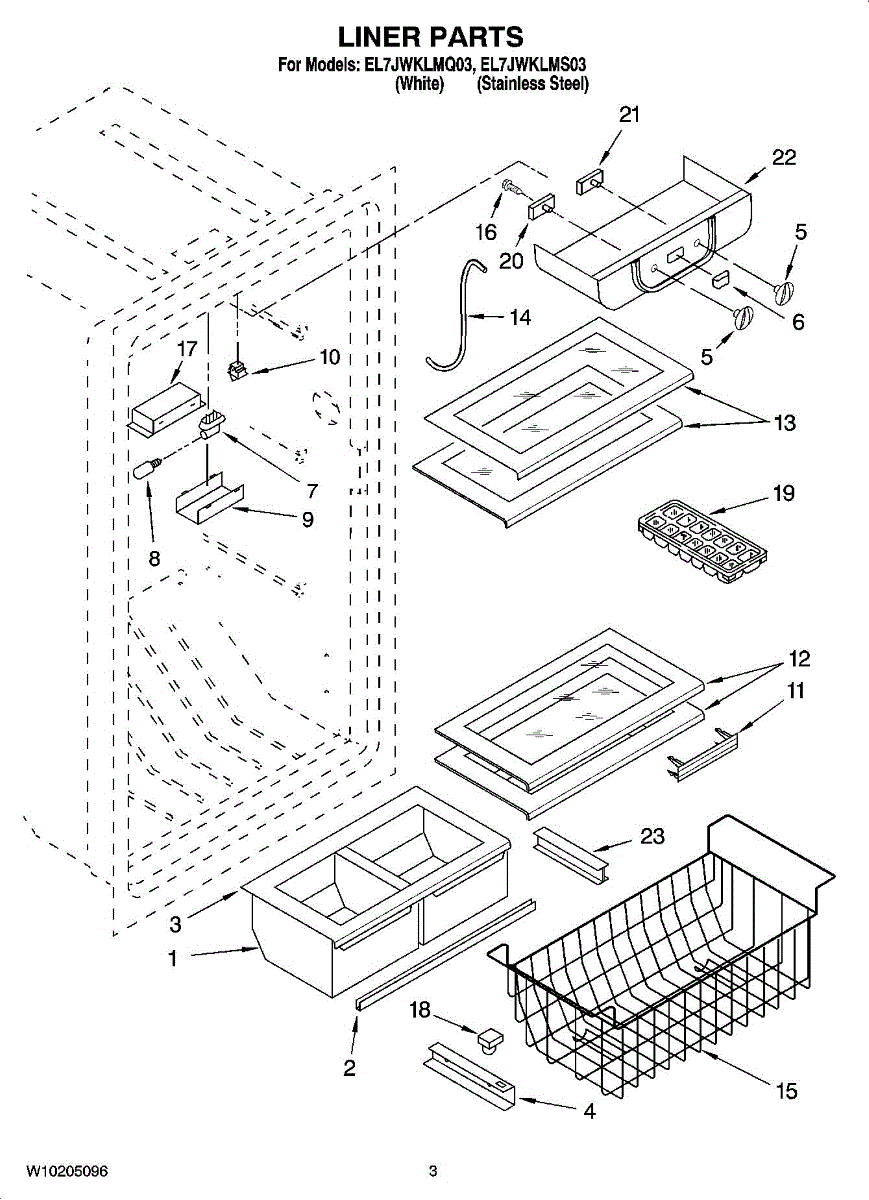 Left-side basket rail for freezers. Replaces cracked, broken, or missing slide rails. Installs on the freezer wall to support wire baskets.
