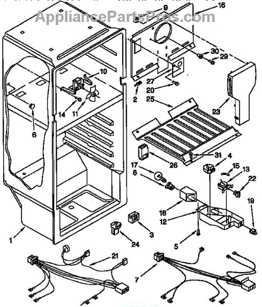 This freezer wire harness links the refrigerator's control system to components inside the freezer compartment. Replacing a compromised harness restores reliable electrical connections and can resolve intermittent or dead freezer functions caused by burned, broken, or corroded wiring.