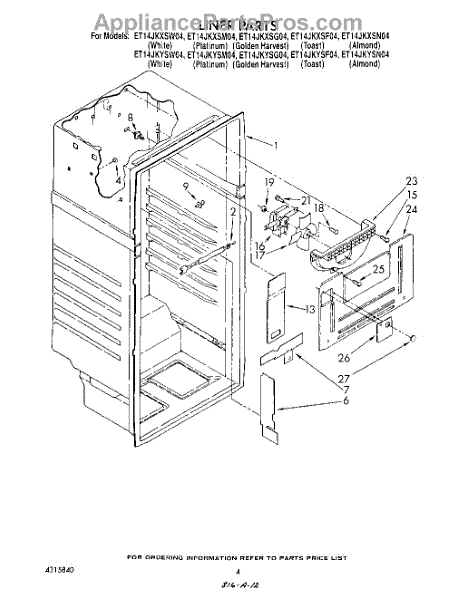 Parts for Whirlpool ET14JKXSW04: 03 - Liner Parts
