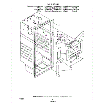 Parts for Whirlpool ET14JKYSN04: 03 - Liner Parts