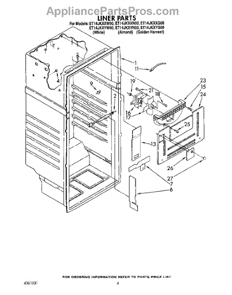 Parts for Whirlpool ET14JKYXW00: 03 - Liner Parts