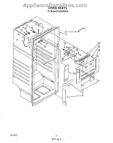 Parts for Whirlpool ET14ZKXWG00: 03 - Liner Parts