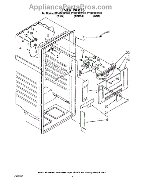 Parts for Whirlpool ET14ZKXXG01: 03 - Liner Parts