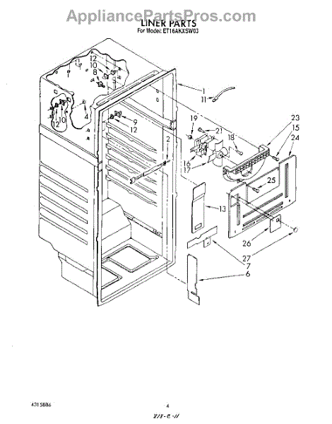 Parts for Whirlpool ET16AKXSW03: 03 - Liner Parts
