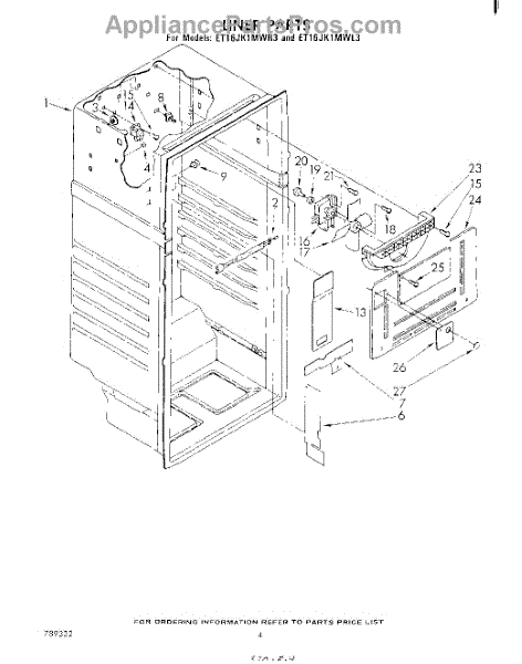 Parts for Whirlpool ET16JK1MWR3: 03 - Liner Parts