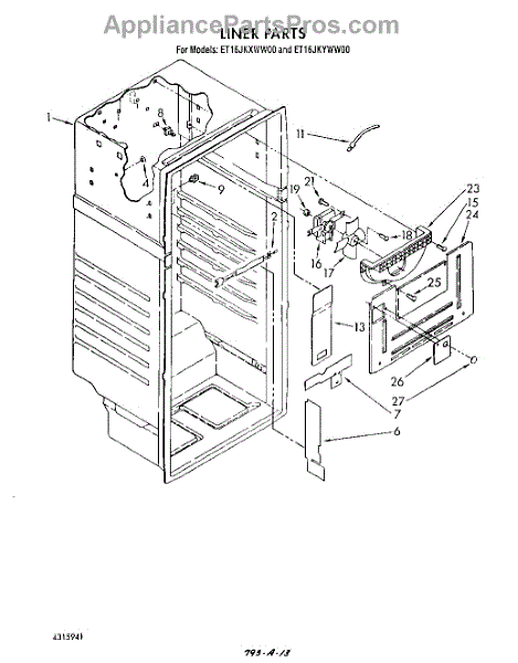 Parts for Whirlpool ET16JKXWM00: 03 - Liner Parts