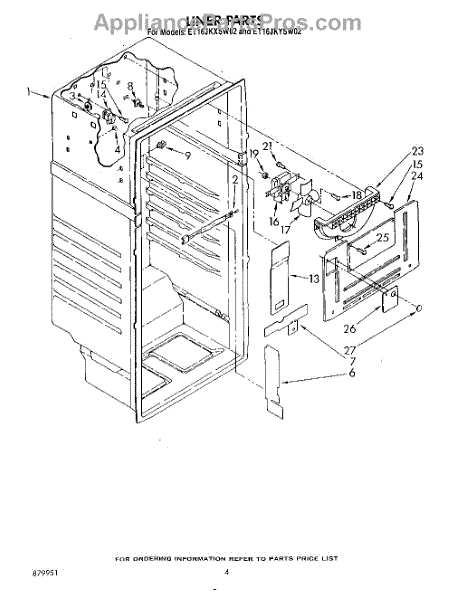 Parts for Whirlpool ET16JKYSG02: 03 - Liner Parts