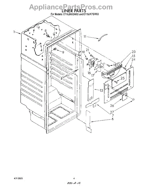 Parts for Whirlpool ET16JKYSG03: 03 - Liner Parts