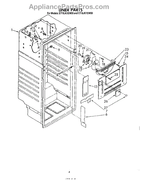 Parts for Whirlpool ET16JKYSW00: 03 - Liner Parts