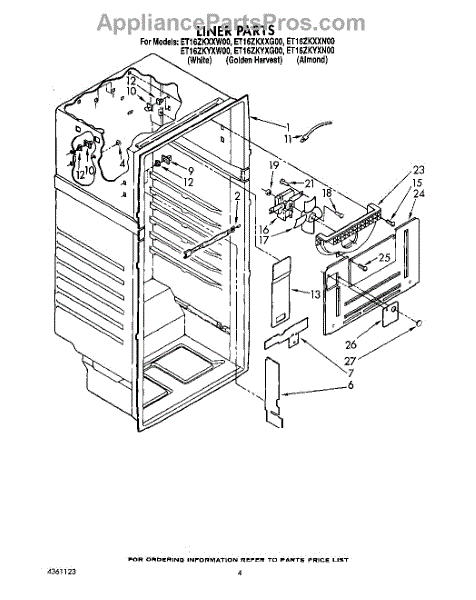 Parts for Whirlpool ET16ZKXXN00: 03 - Liner Parts