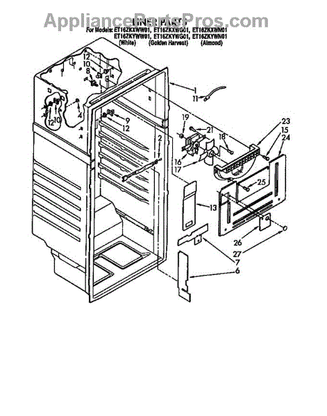 Parts for Whirlpool ET16ZKYWW01: Liner Parts