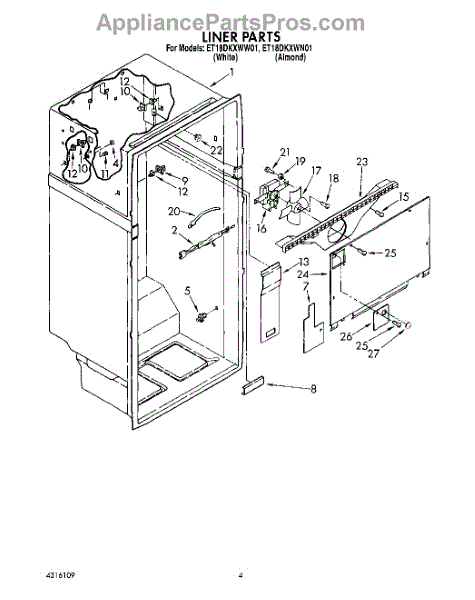 Parts for Whirlpool ET18DKXWW01: 02 - Liner Parts