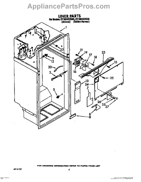 Parts for Whirlpool ET18DKXXG00: 03 - Liner Parts