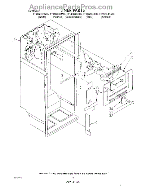 Parts for Whirlpool ET18GKXSW06: 03 - Liner Parts