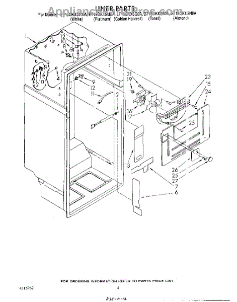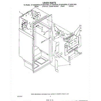Parts for Whirlpool ET18GKXSW0A: 03 - Liner Parts