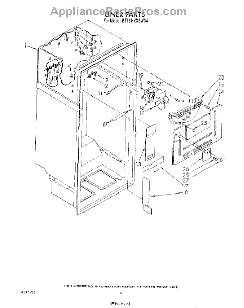 Parts for Whirlpool ET18HKXSW0A: 03 - Liner Parts