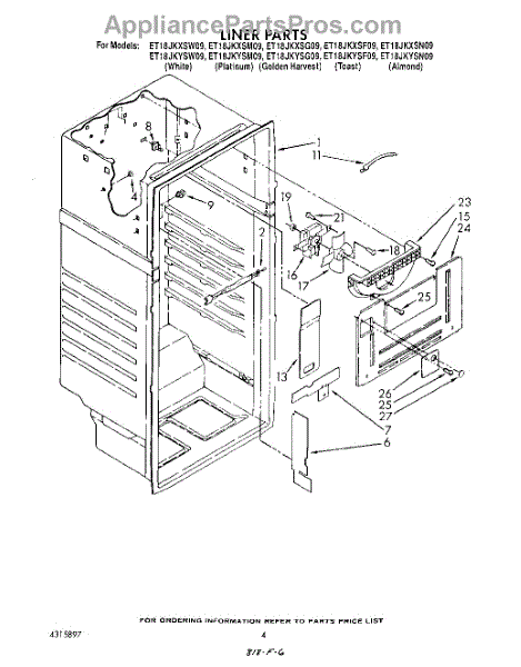Parts for Whirlpool ET18JKYSG09: 03 - Liner Parts