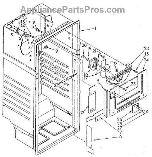 Secures refrigerator shelves in place to prevent shifting or slipping. Replace if broken, cracked, or missing to restore proper shelf support and stability.