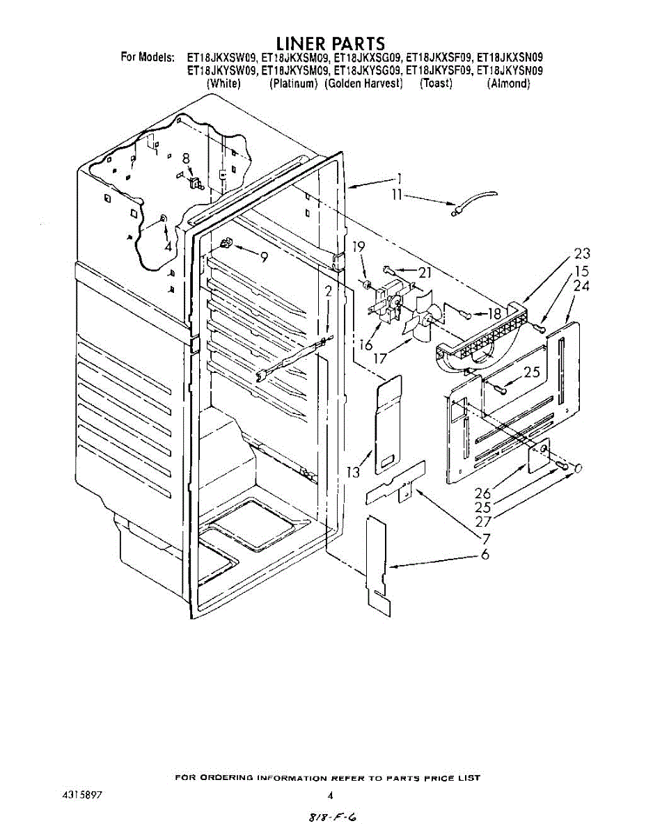 Parts for Whirlpool ET18JKYSW09: 03 - Liner Parts