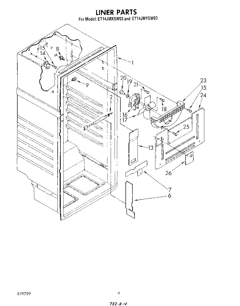 Parts for Whirlpool ET18JMXSW03: 03 - Liner Parts