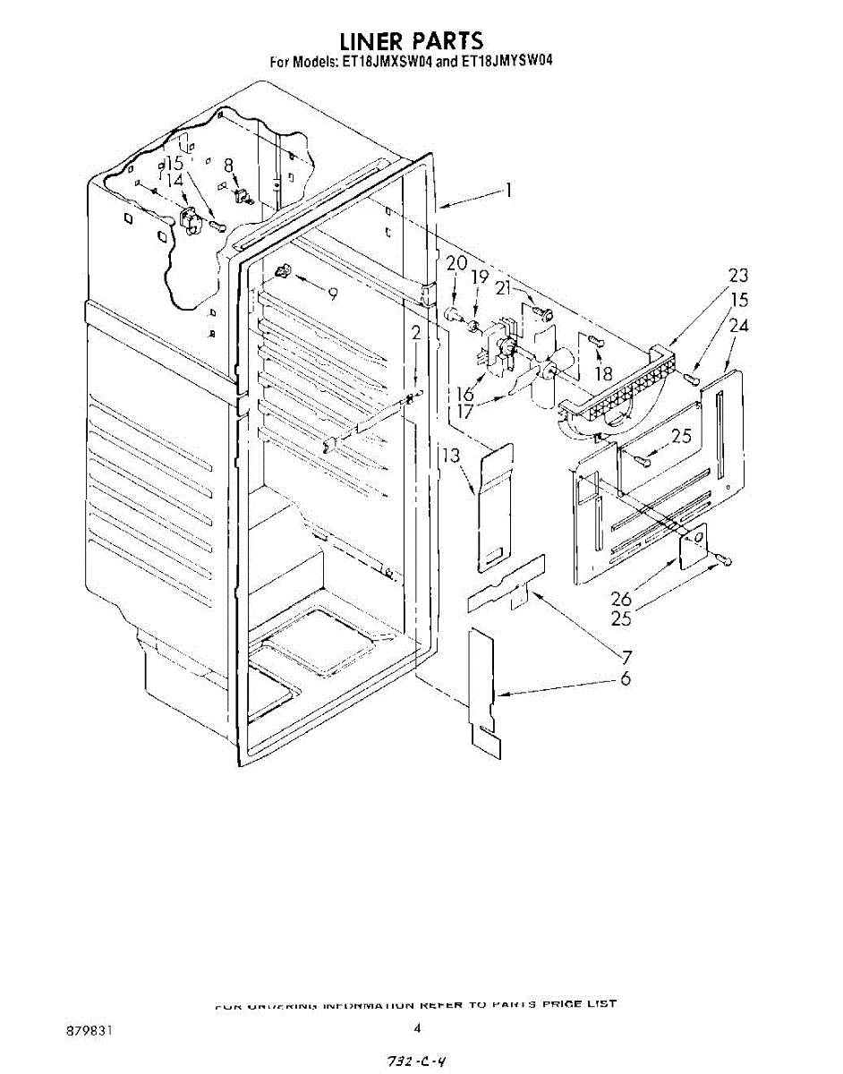 Parts for Whirlpool ET18JMXSW04: 03 - Liner Parts