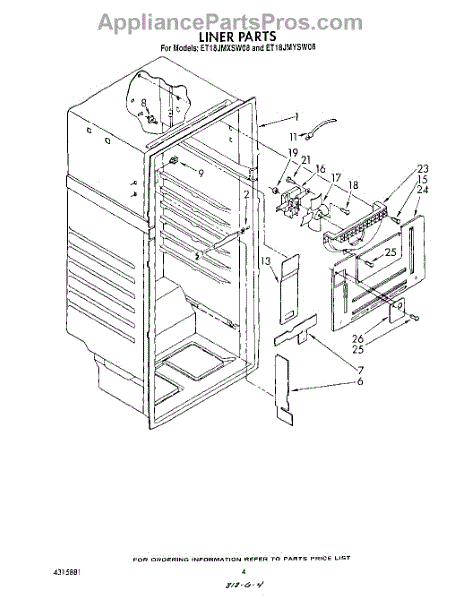 Parts for Whirlpool ET18JMYSM08: 03 - Liner Parts
