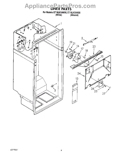 Parts for Whirlpool ET18LKXAW00: 02 - Liner Parts