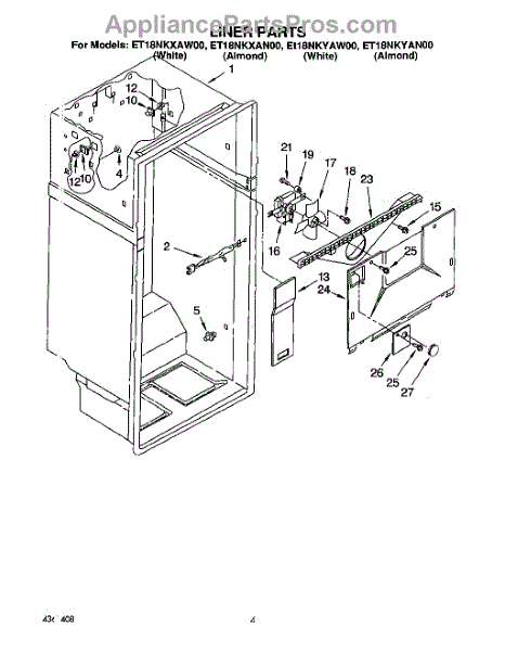 Parts for Whirlpool ET18NKXAN00: 02 - Liner Parts