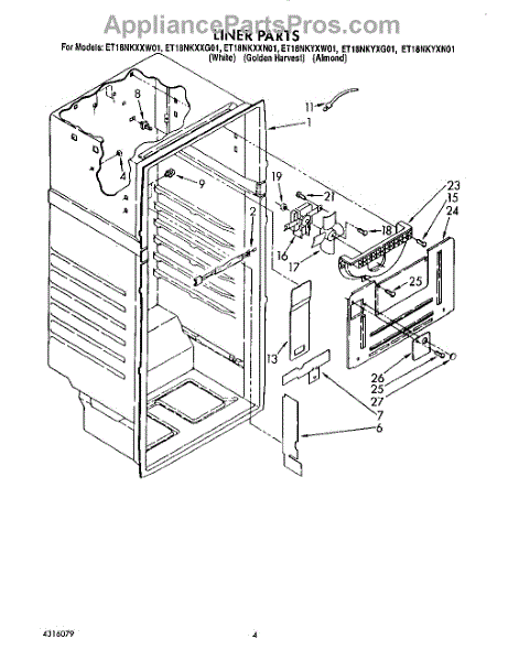 Parts for Whirlpool ET18NKYXN01: 03 - Liner Parts