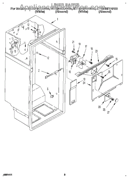 Parts for Whirlpool ET18NMXAN00: 02 - Liner Parts