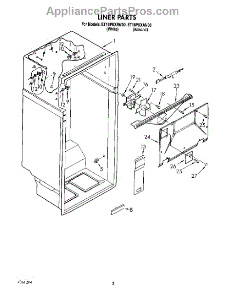 Parts for Whirlpool ET18PKXAN00: 02 - Liner Parts