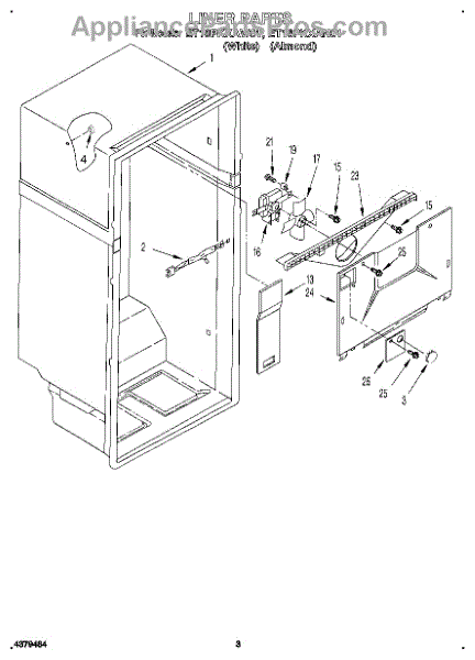 Parts for Whirlpool ET18PKXAW01: 02 - Liner Parts