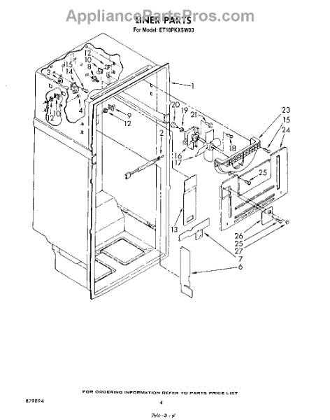 Parts for Whirlpool ET18PKXSW03: 03 - Liner Parts