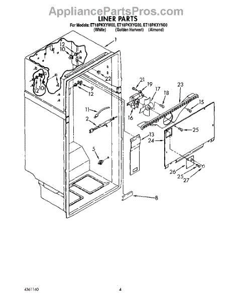 Parts for Whirlpool ET18PKXYG00: 02 - Liner Parts