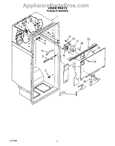 Parts for Whirlpool ET18ZKXWW00: 02 - Liner Parts