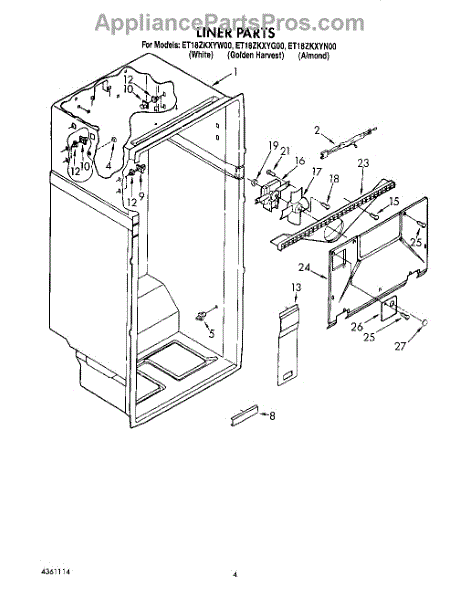 Parts for Whirlpool ET18ZKXYN00: 02 - Liner Parts