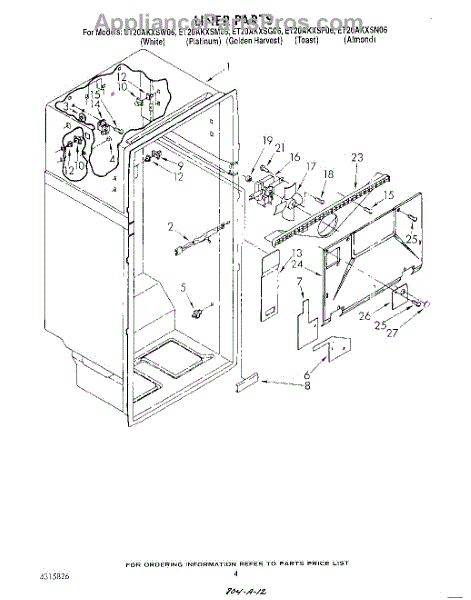 Parts for Whirlpool ET20AKXSW06: 03 - Liner Parts