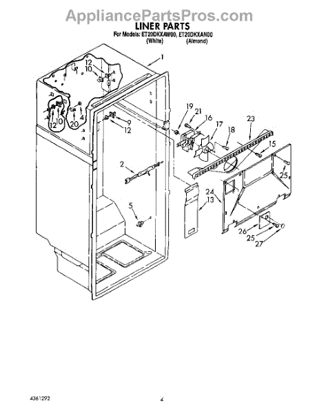 Parts for Whirlpool ET20DKXAN00: 03 - Liner Parts
