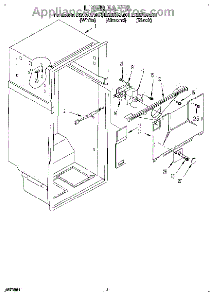 Parts for Whirlpool ET20DKXAW01: 02 - Liner Parts