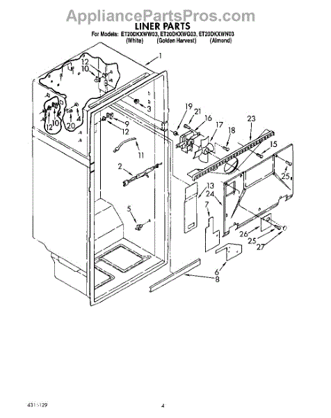 Parts for Whirlpool ET20DKXWN03: 02 - Liner Parts
