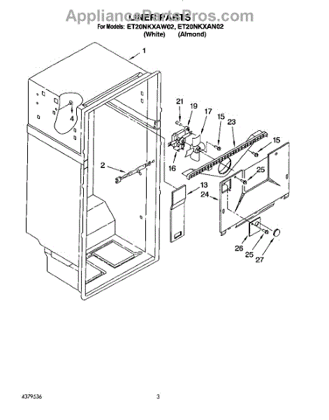 Parts for Whirlpool ET20NKXAN02: 02 - Liner Parts