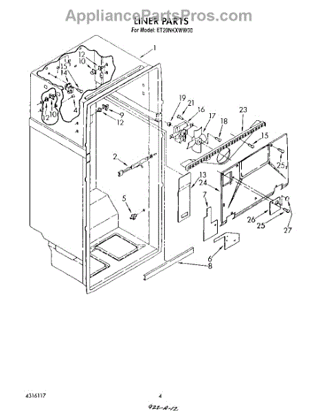 Parts for Whirlpool ET20NKXWW00: 03 - Liner Parts