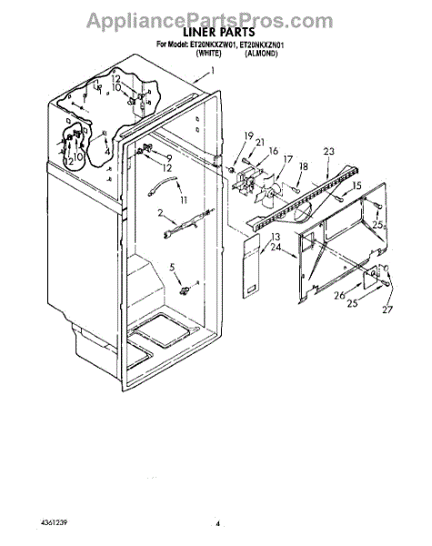 Parts for Whirlpool ET20NKXZW01: 03 - Liner Parts