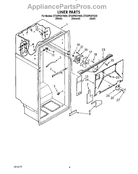Parts for Whirlpool ET20PKXYG00: 03 - Liner Parts