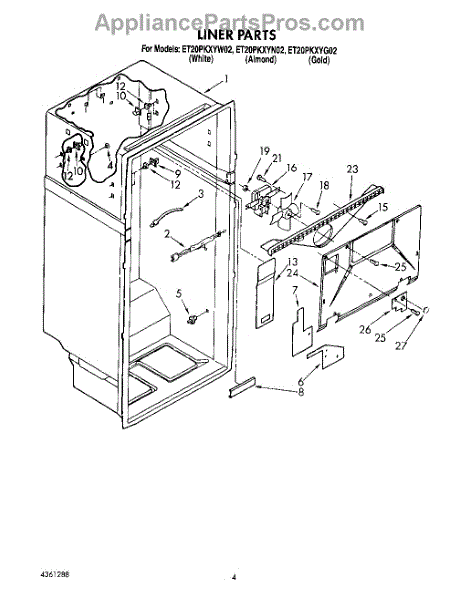 Parts for Whirlpool ET20PKXYW02: 02 - Liner Parts